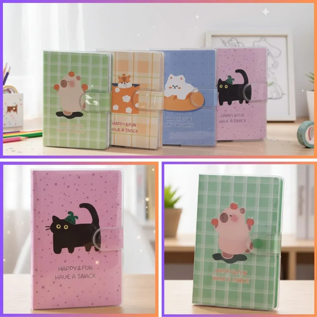 cute pocket notebook, animal notebook, mini notebook, snap closure diary, kawaii stationery, aesthetic notebook, kids notebook, study notes pad, travel notebook, happy fun series, compact diary, cute journal